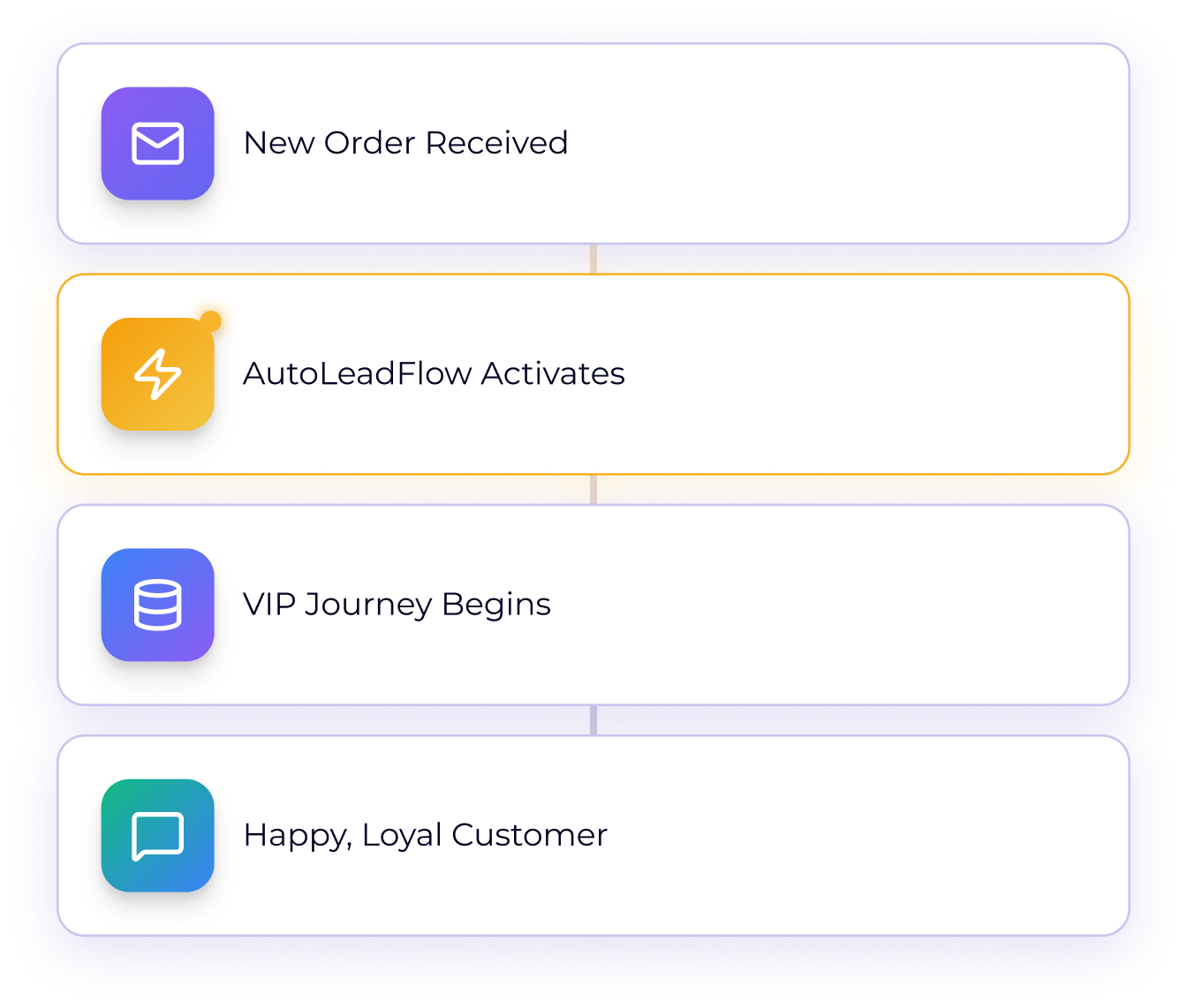 VIP Customer Flow connects your company's lead or order notifications straight to your CRM. Every time a new customer orders, it triggers a personalized sequence that feels warm and human, not robotic.